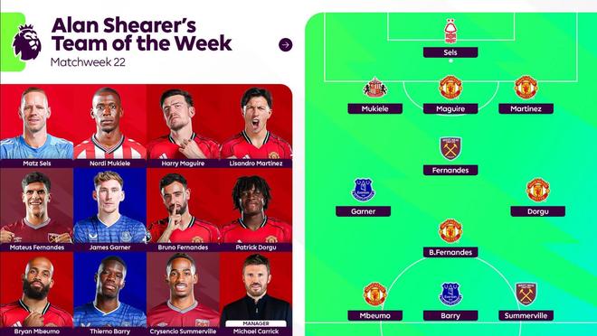 希勒评英超第22轮最佳阵:曼联5人在列,埃弗顿、西汉姆各2人